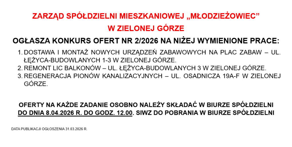 KONKURS OFERT – PRACE REMONTOWE 2/2026